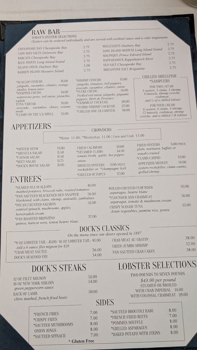 Welcome to Dock's Oyster House, a culinary gem nestled at 2405 Atlantic Ave in bustling Atlantic City. This renowned eatery excels in fresh seafood and offers a menu that showcases the best of the ocean’s bounty. Start your meal with enticing appetizers like the Appetizer Medley, featuring oysters rockefeller, clams casino, and grilled jumbo shrimp, perfect for tantalizing your taste buds.
